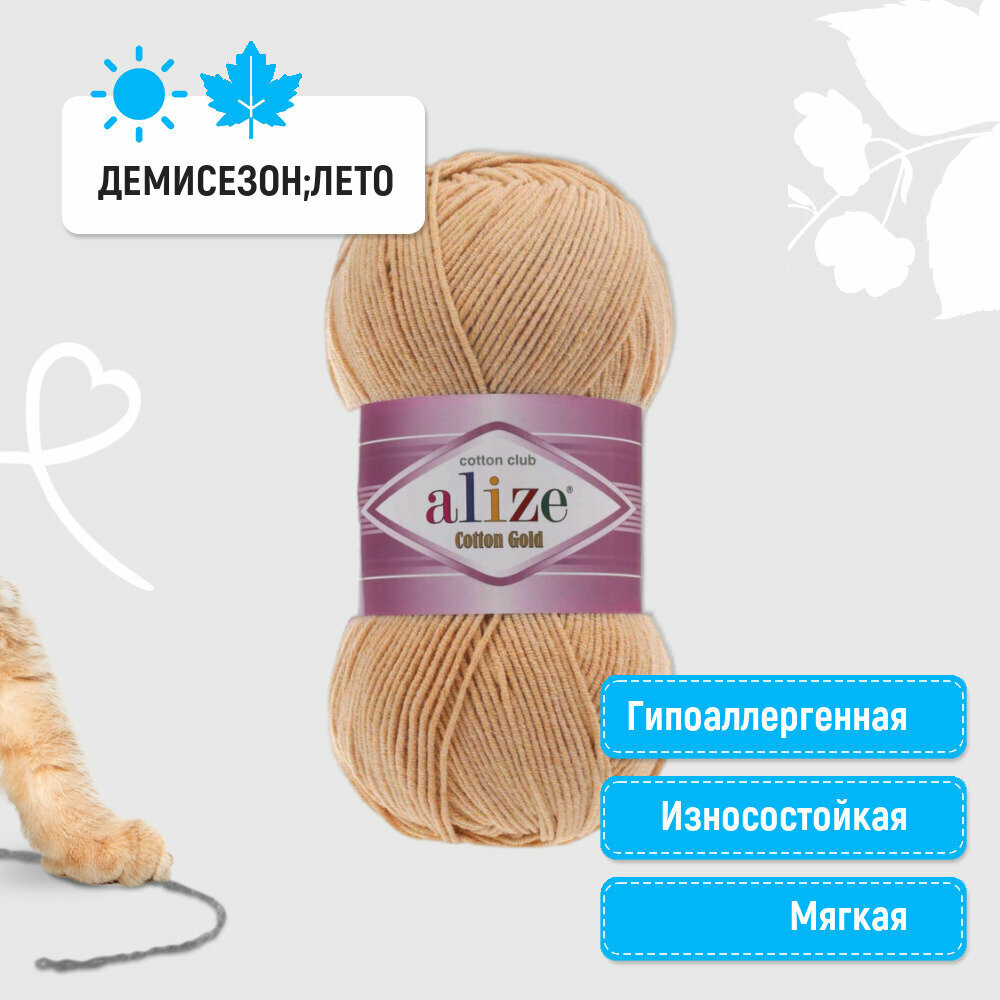 Пряжа Alize Cotton Gold светло-бежевый (67), 55%хлопок/45%акрил, 330м, 100г, 1шт