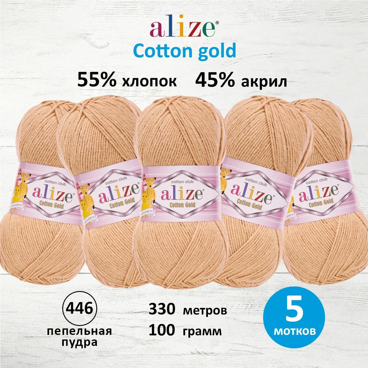 Пряжа ALIZE Cotton gold, пыл.пудра - 446, 55% хлопок, 45% акрил, 5 мотков, 100 г., 330 м.