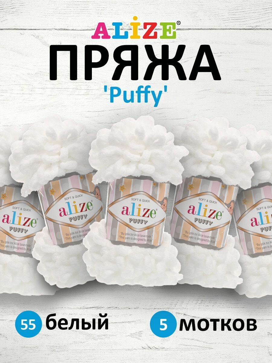 Пряжа Alize Puffy белый (55), 100%микрополиэстер, 9м, 100г, 5шт