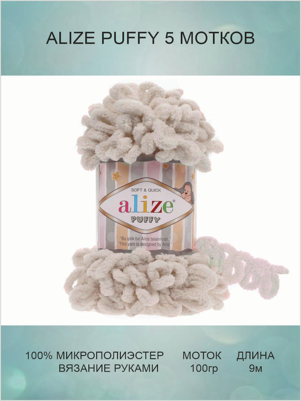 СохранитьПряжа Alize Puffy слоновая кость (599), 100%микрополиэстер, 9м, 100г, 5шт интересное: