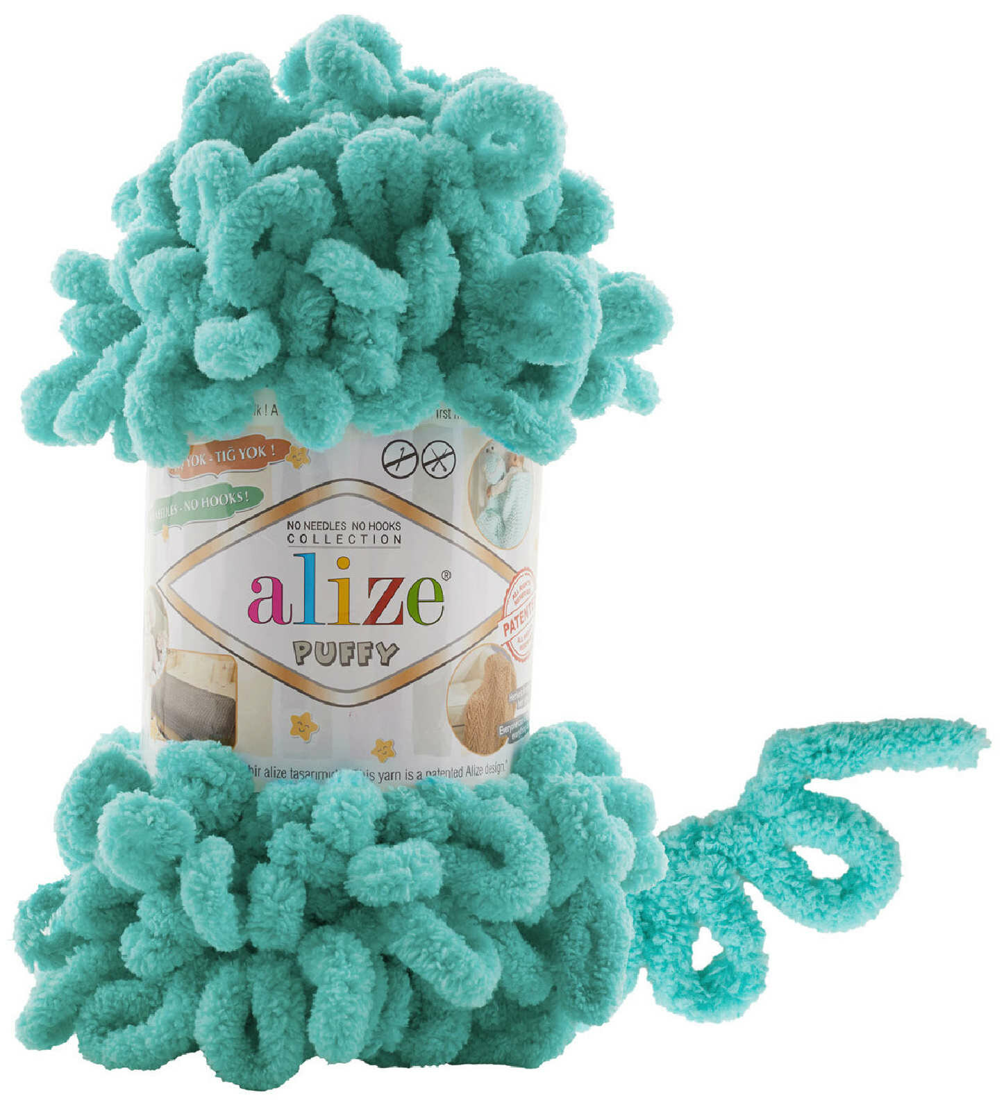 Пряжа Puffy (Alize), мята - 15, 100% микрополиэстер, 5 мотков, 100 г, 9.5 м.