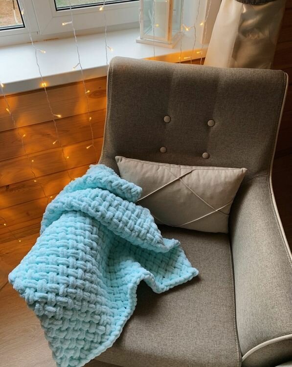 Пряжа плюшевая Alize Puffy (Ализе Пуффи) - 5 мотков 19 светло-бирюзовый для вязания руками, гипоаллергенная, большие петли (4см), 9м/100г
