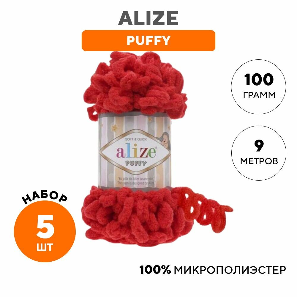 Пряжа для вязания Alize Puffy 56 красный, 100 г, 9,5 м, 5 штук