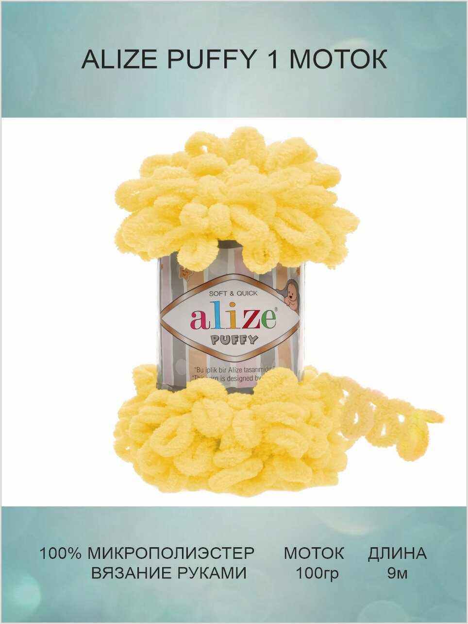 Купить Пряжа Alize Puffy желтый (216), 100%микрополиэстер, 9м, 100г, 1шт