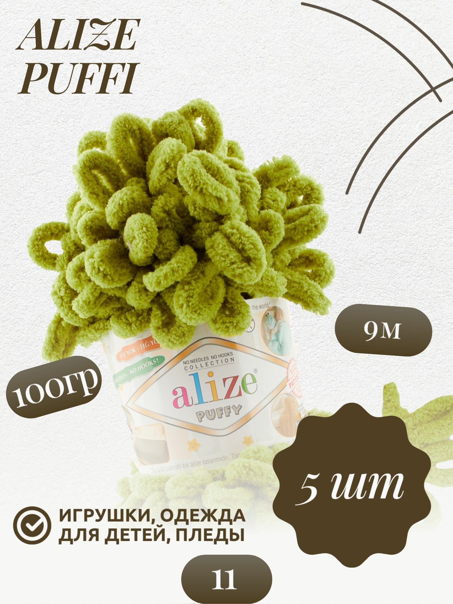 Купить Пряжа Alize Puffy фисташковый (11), 100%микрополиэстер, 9м, 100г, 5шт