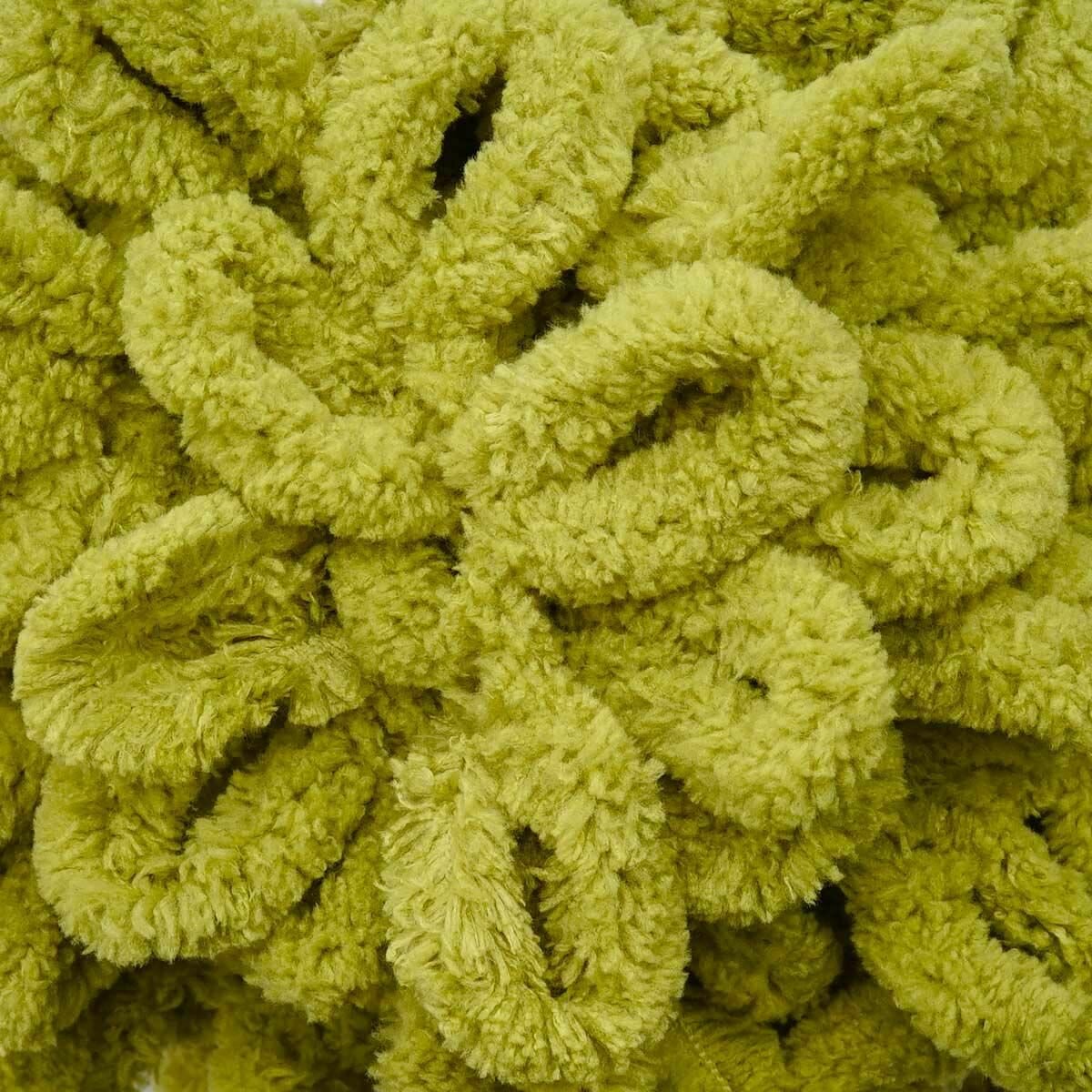 Пряжа плюшевая Alize Puffy (Ализе Пуффи) - 5 мотков 485 зеленый для вязания руками, гипоаллергенная, большие петли (4см), 9м/100г