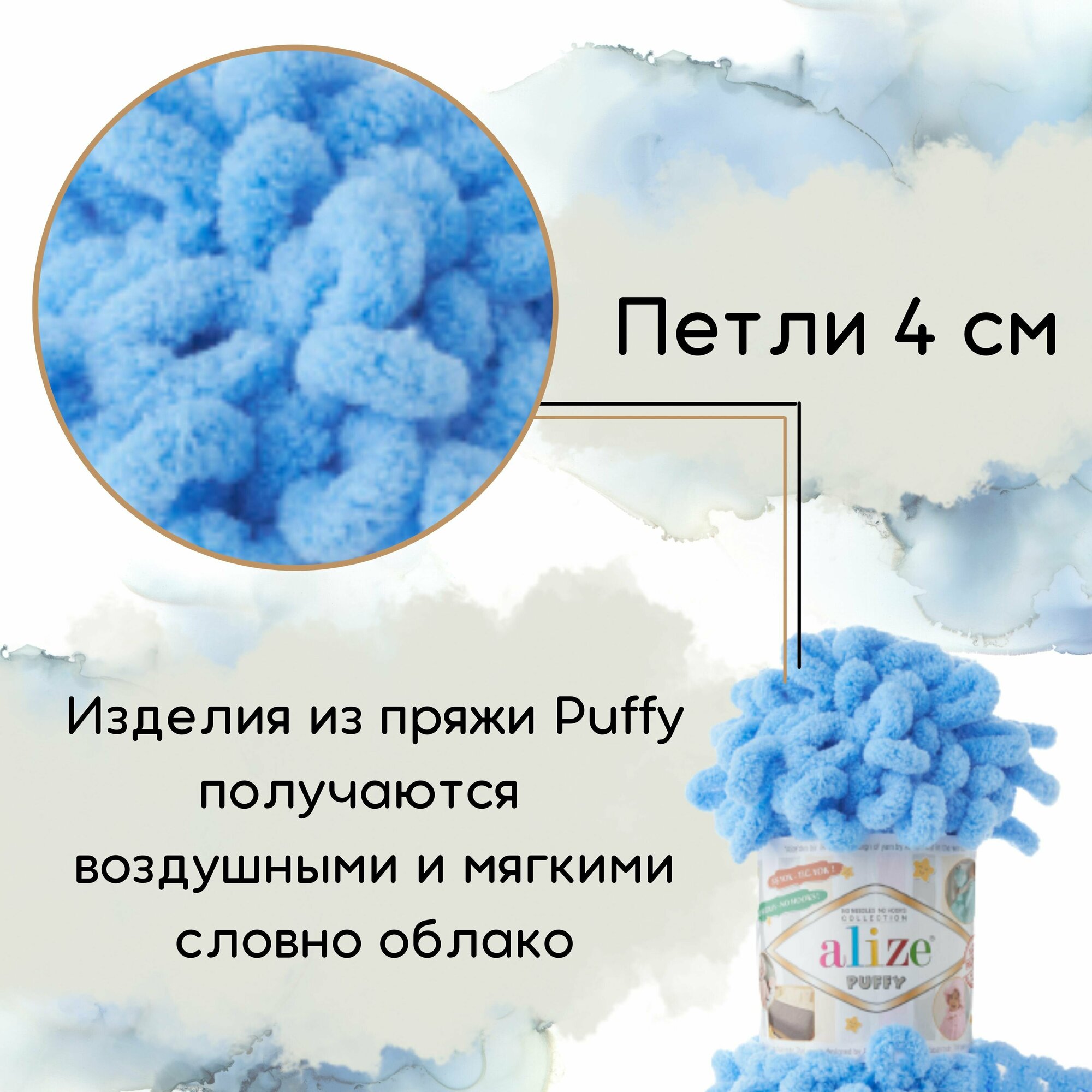 СохранитьПряжа Alize Puffy голубой (342), 100%микрополиэстер, 9м, 100г, 5шт интересное: