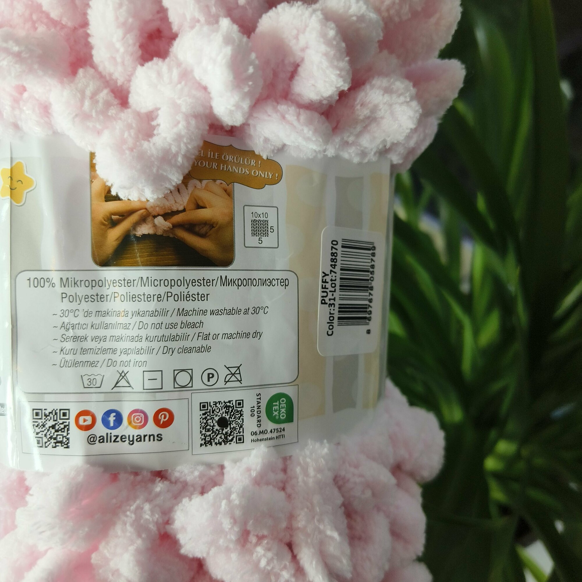 Пряжа плюшевая Alize Puffy (Ализе Пуффи) - 5 мотков 31 детский розовый для вязания руками, гипоаллергенная, большие петли (4см), 9м/100г