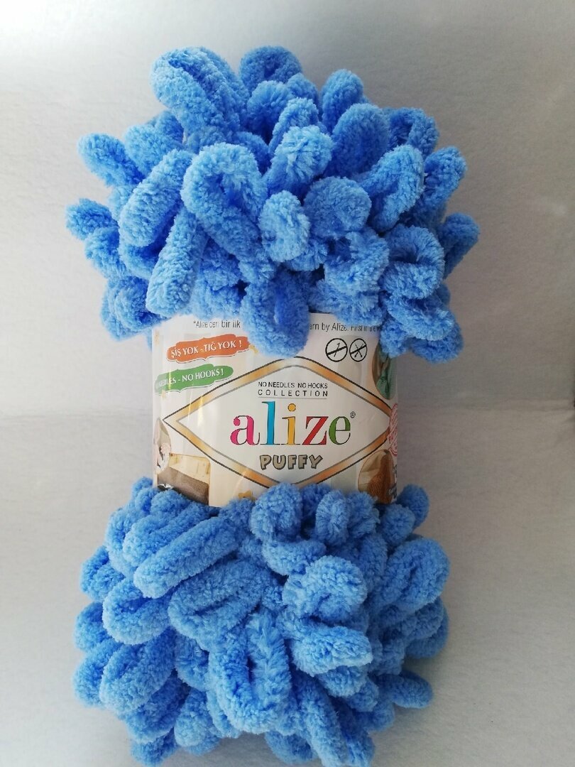 Пряжа Puffy (Alize), василек - 141, 100% микрополиэстер, 5 мотков, 100 г, 9.5 м.