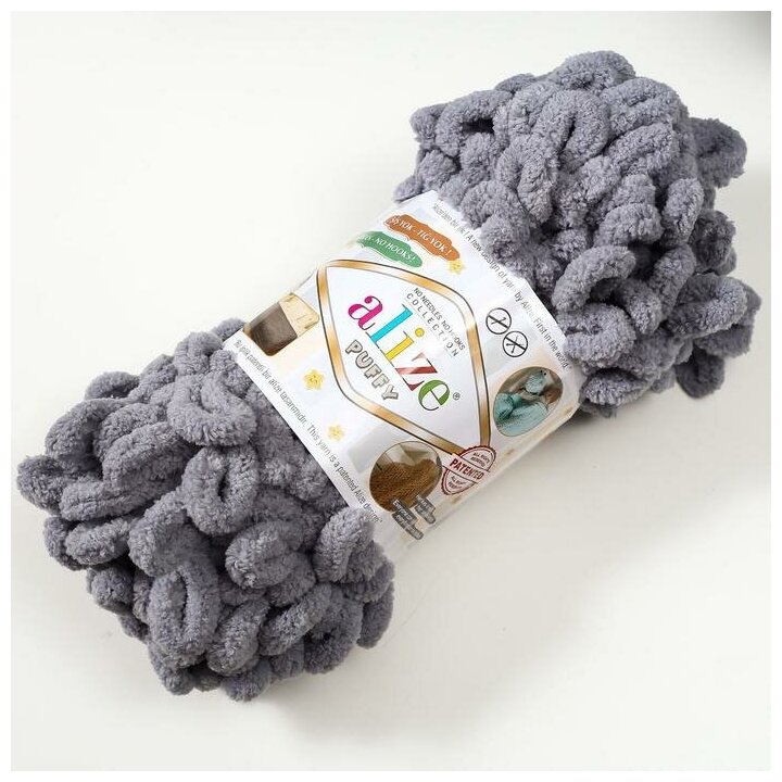 Пряжа Alize Puffy (100% микрополиэстер) 100 гр, 9.2 м, 428 средне-серый, 1 моток