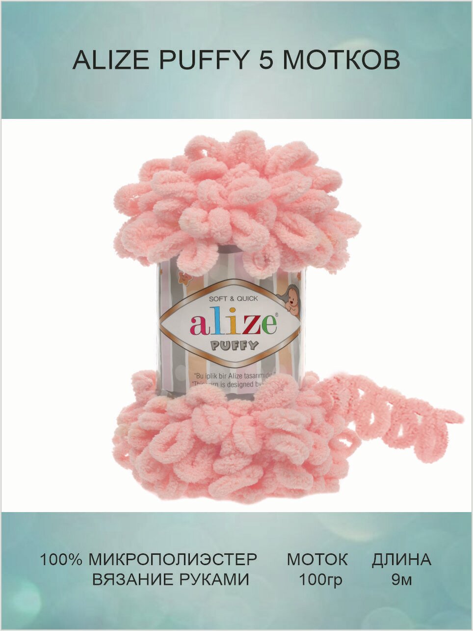 Пряжа для вязания ALIZE Puffy Ализе Пуффи: 185 (розовый), 5 шт 9 м 100 г, 100% микрополиэстер, большие петли