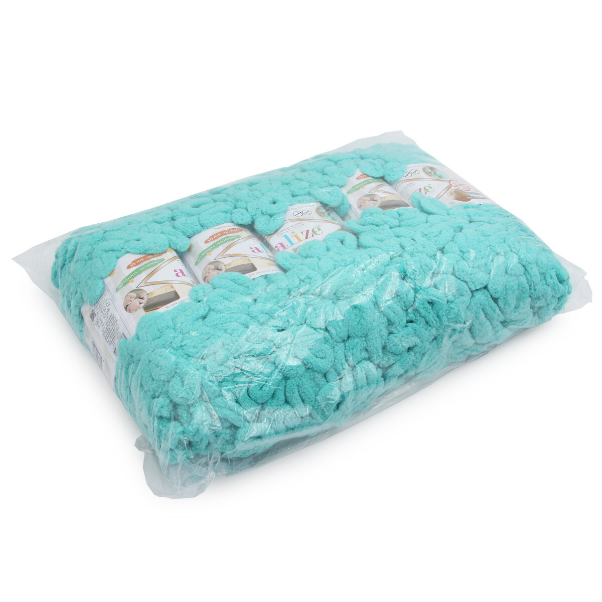 Пряжа плюшевая Alize Puffy (Ализе Пуффи) - 5 мотков 19 светло-бирюзовый для вязания руками, гипоаллергенная, большие петли (4см), 9м/100г