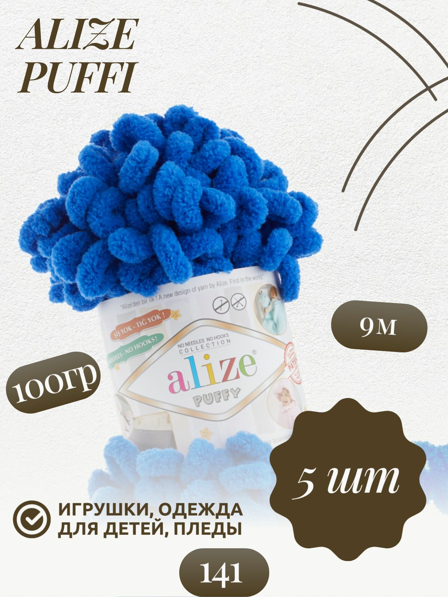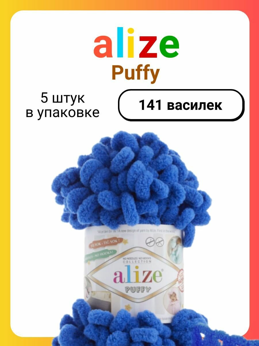 Пряжа Puffy (Alize), василек - 141, 100% микрополиэстер, 5 мотков, 100 г, 9.5 м.