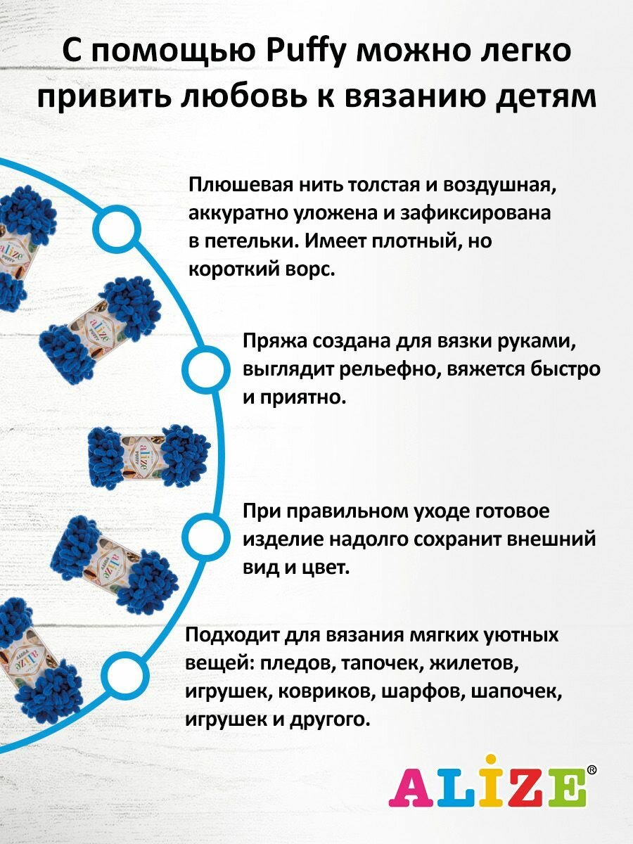 Пряжа для вязания Alize 'Puffy', 100г, 9м (100% микрополиэстер) (289 синий), 5 мотков