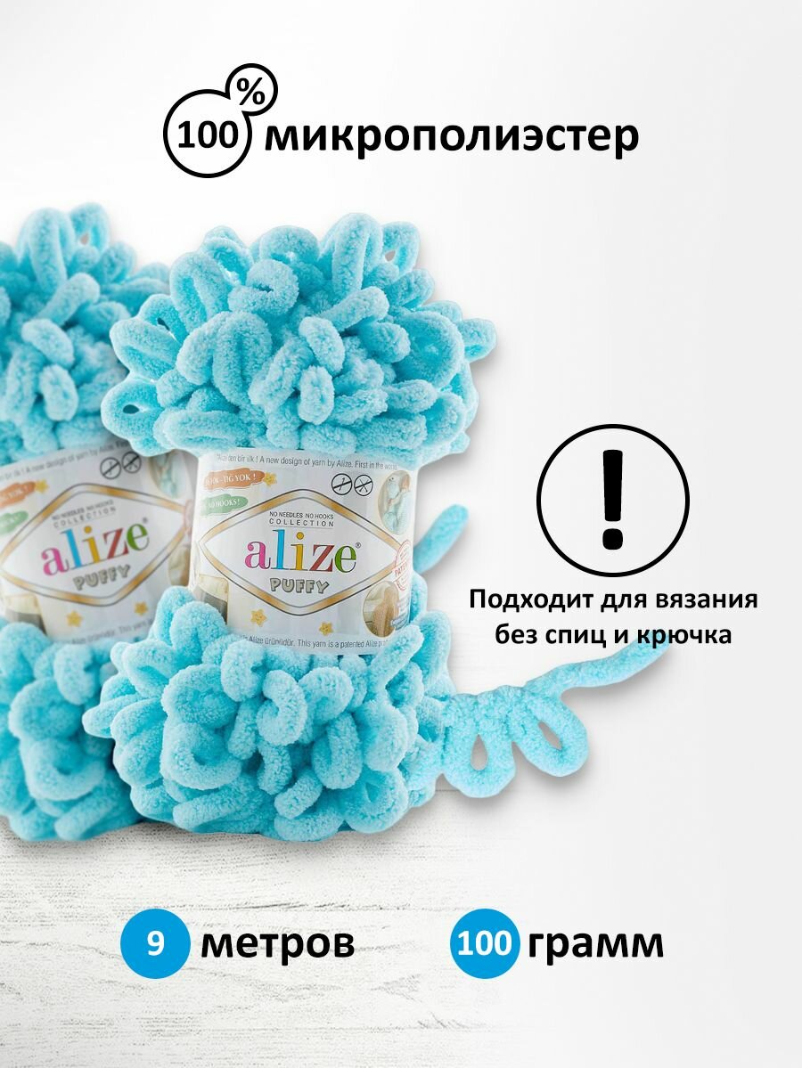 Пряжа для вязания Alize 'Puffy', 100г, 9м (100% микрополиэстер) (414 лазурный), 5 мотков
