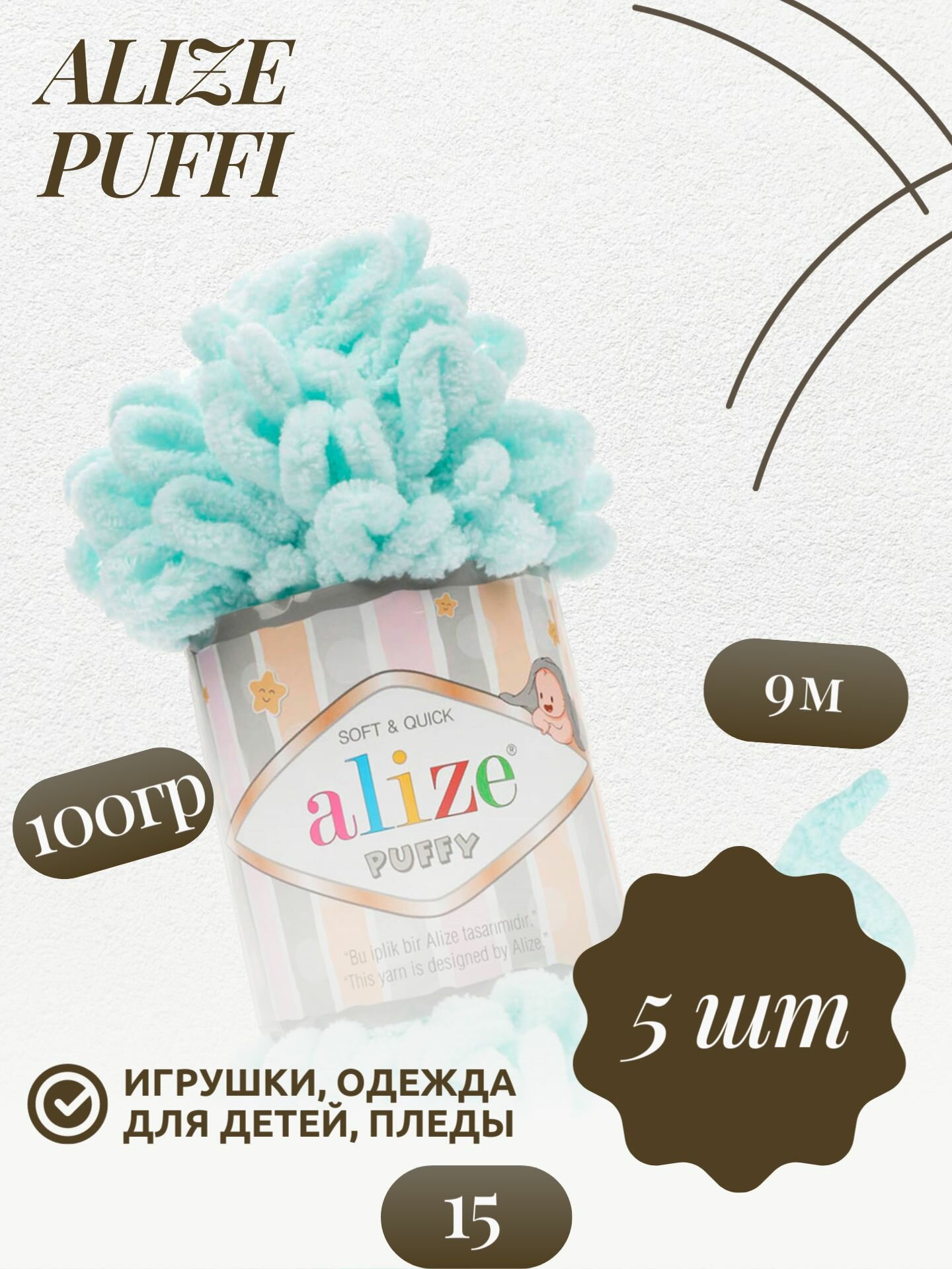 Пряжа Puffy (Alize), мята - 15, 100% микрополиэстер, 5 мотков, 100 г, 9.5 м.