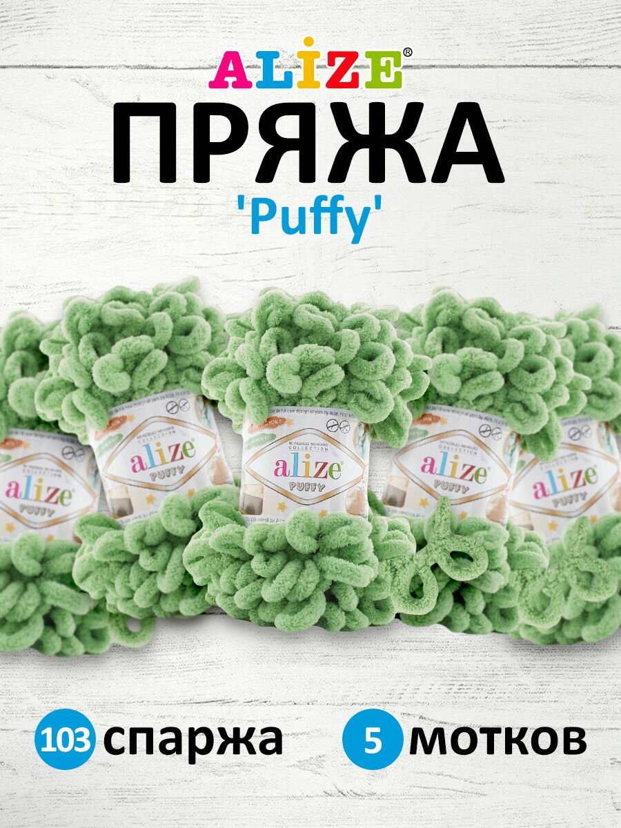 Купить Пряжа для вязания руками с готовыми петлями ALIZE 'Puffy' 100г, 9м (103 спаржа), 5 мотков