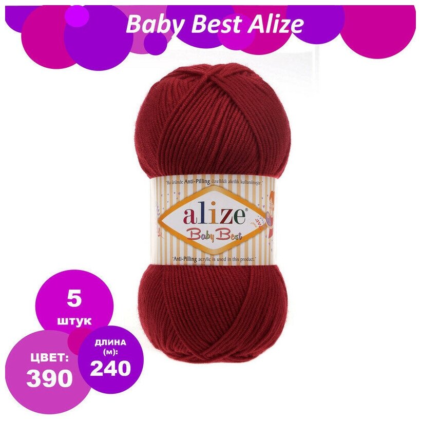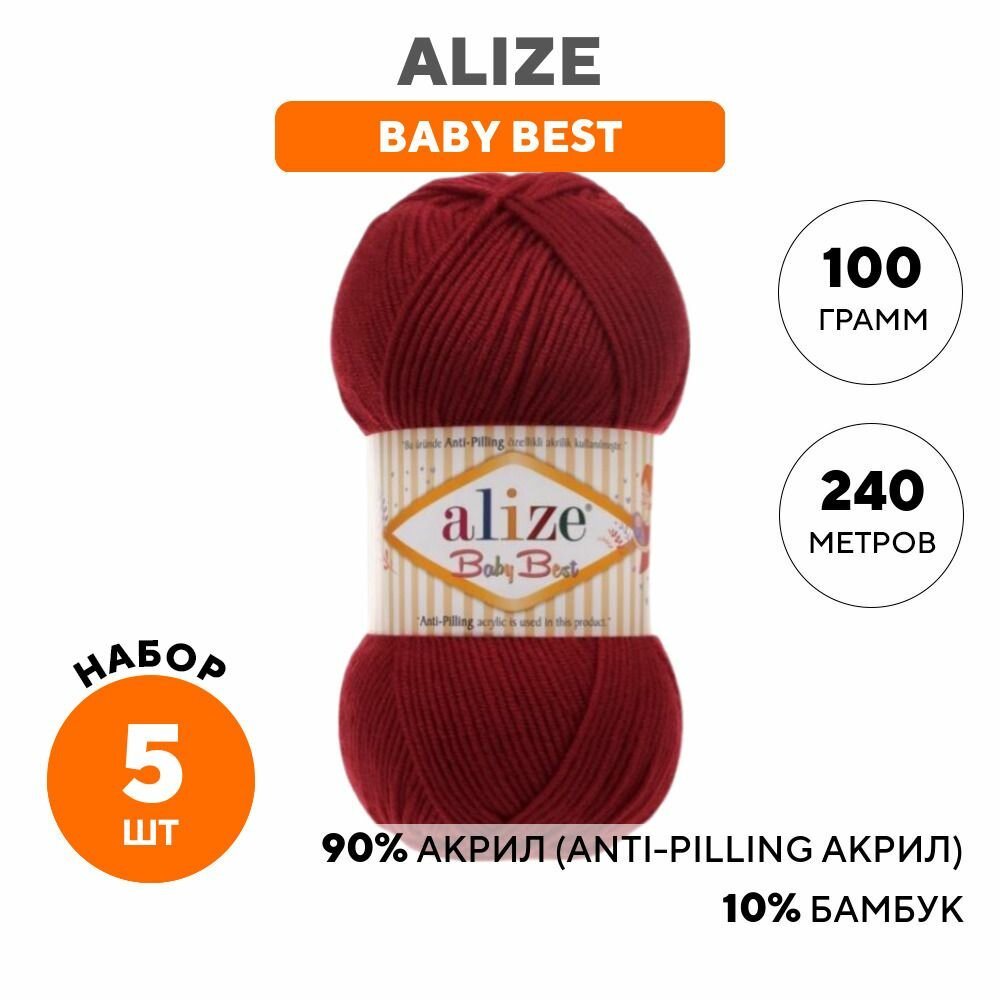 Купить Пряжа для вязания Alize 'Baby Best', 100г, 240м (10% бамбук, 90% акрил), с эффектом антипиллинг (390 вишневый), 5 мотков
