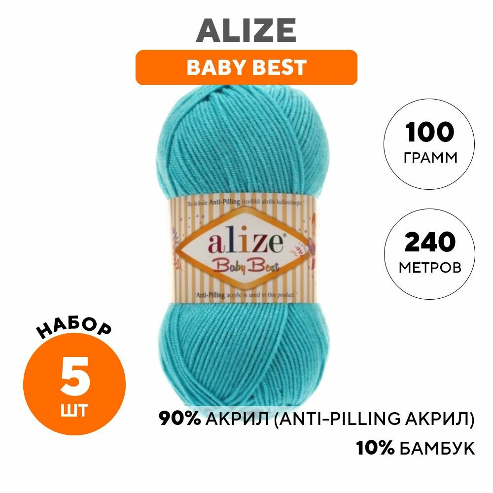 Пряжа для вязания ALIZE 'Baby Best', 100г, 240м (10% бамбук, 90% акрил) Антипиллинг (287 бирюзовый), 5 мотков