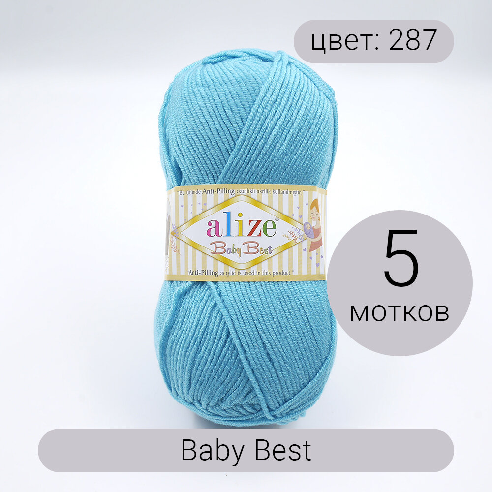 Купить Пряжа для вязания Alize 'Baby Best', 100г, 240м (10% бамбук, 90% акрил), с эффектом антипиллинг (287 бирюзовый), 5 мотков
