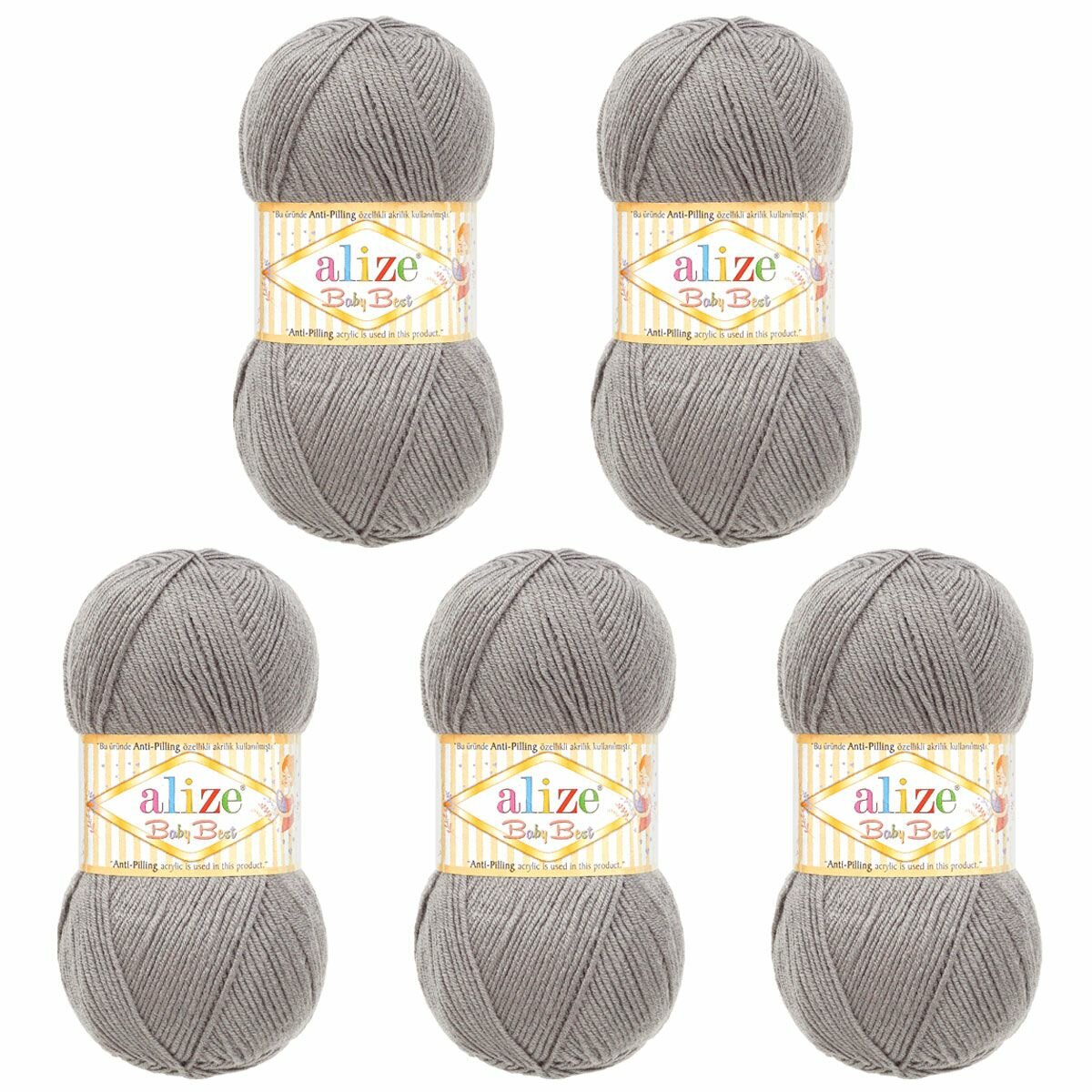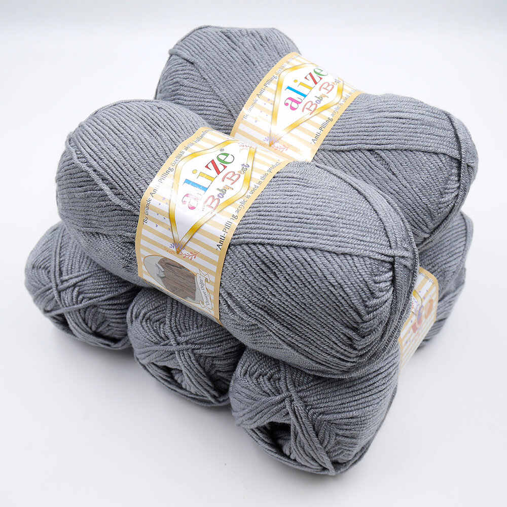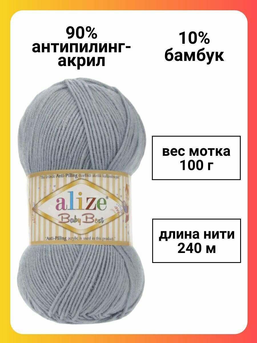 Пряжа Alize Baby best серый (344), 90%акрил/10%бамбук, 240м, 100г, 5шт