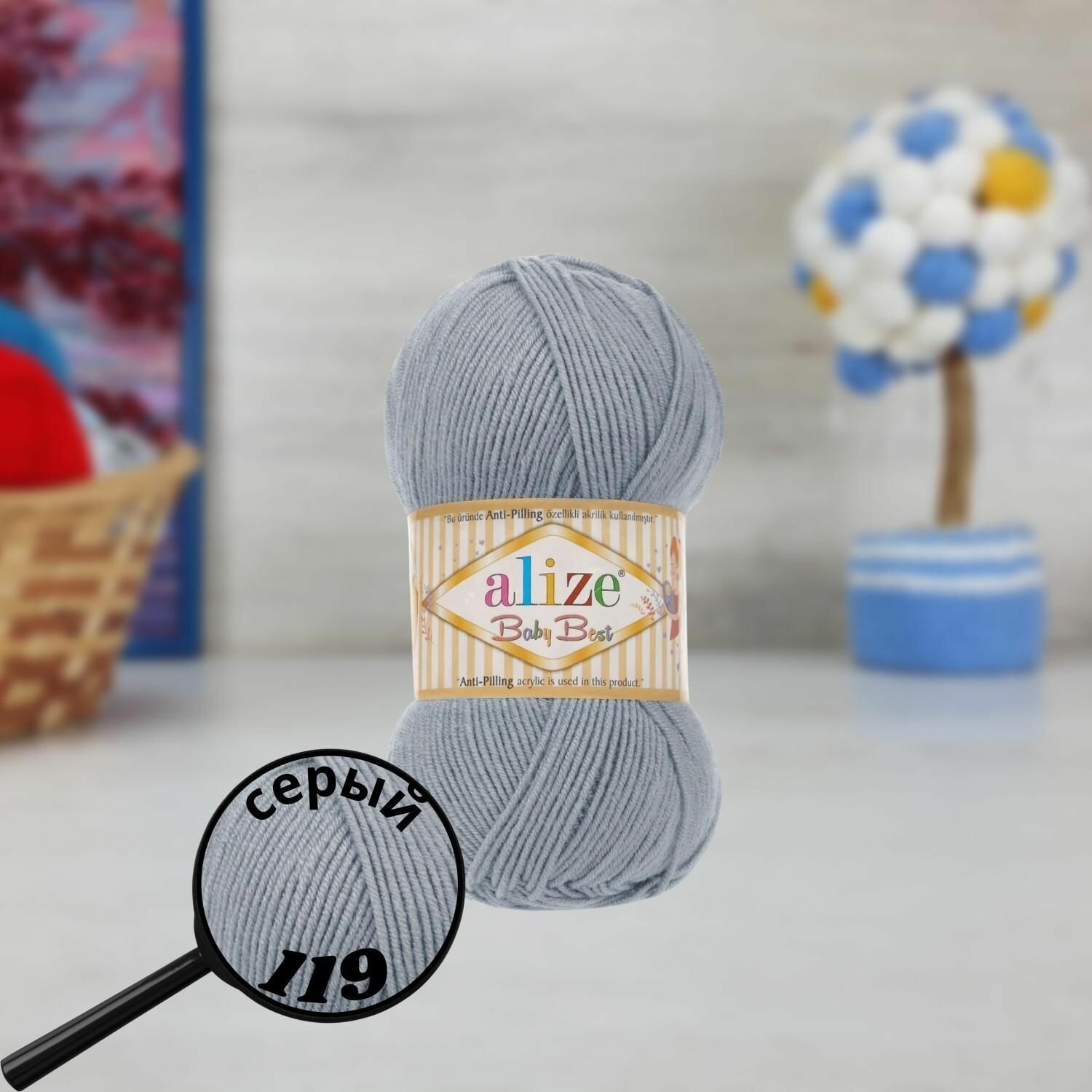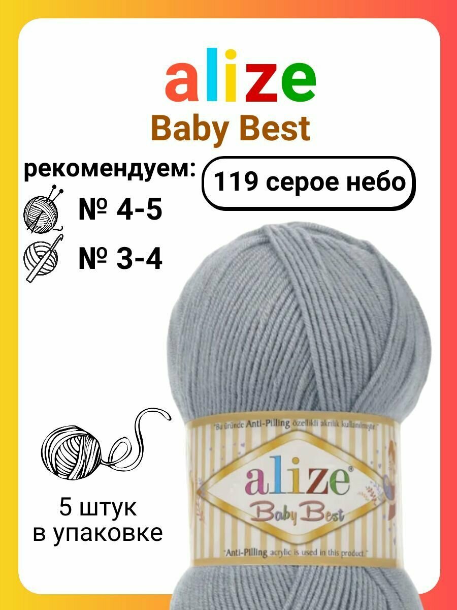 СохранитьПряжа Alize Baby best серый (119), 90%акрил/10%бамбук, 240м, 100г, 5шт интересное: