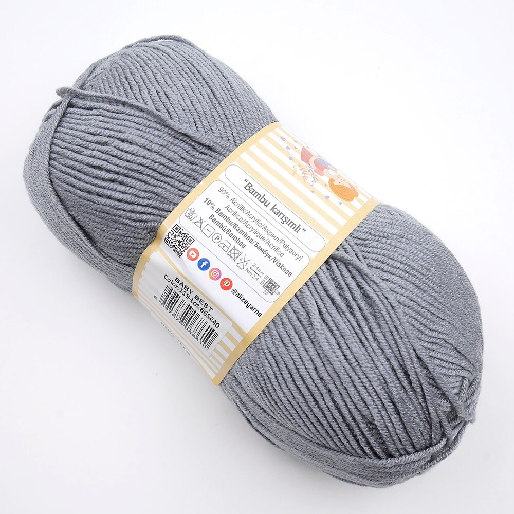 Пряжа BABY BEST (Alize), серый - 119, 10% бамбук, 90% акрил, 5 мотков, 100 г., 240 м.