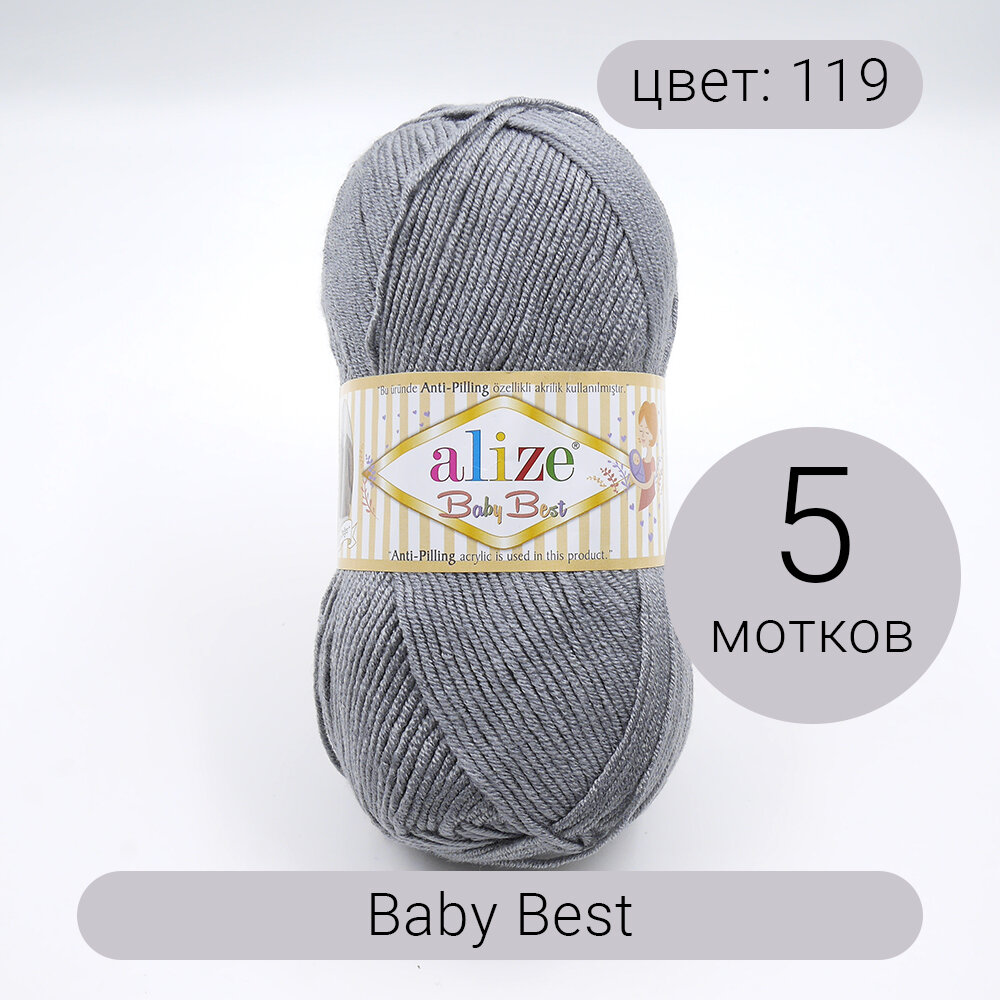 Купить Пряжа Alize Baby best серый (119), 90%акрил/10%бамбук, 240м, 100г, 5шт