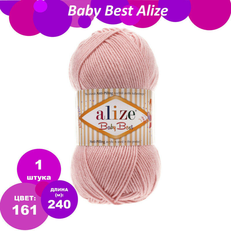 Пряжа BABY BEST (Alize), пудра - 161, 10% бамбук, 90% акрил, 5 мотков, 100 г, 240 м.