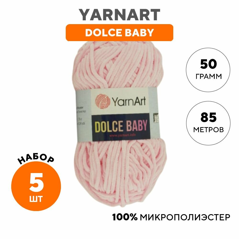 Пряжа YarnArt Ярн Арт Ярнарт плюшевая, Dolce Baby, толстая, микрополиэстер 100%, цвет 781, бледно-розовый, 5 шт. по 50 г, 85 м