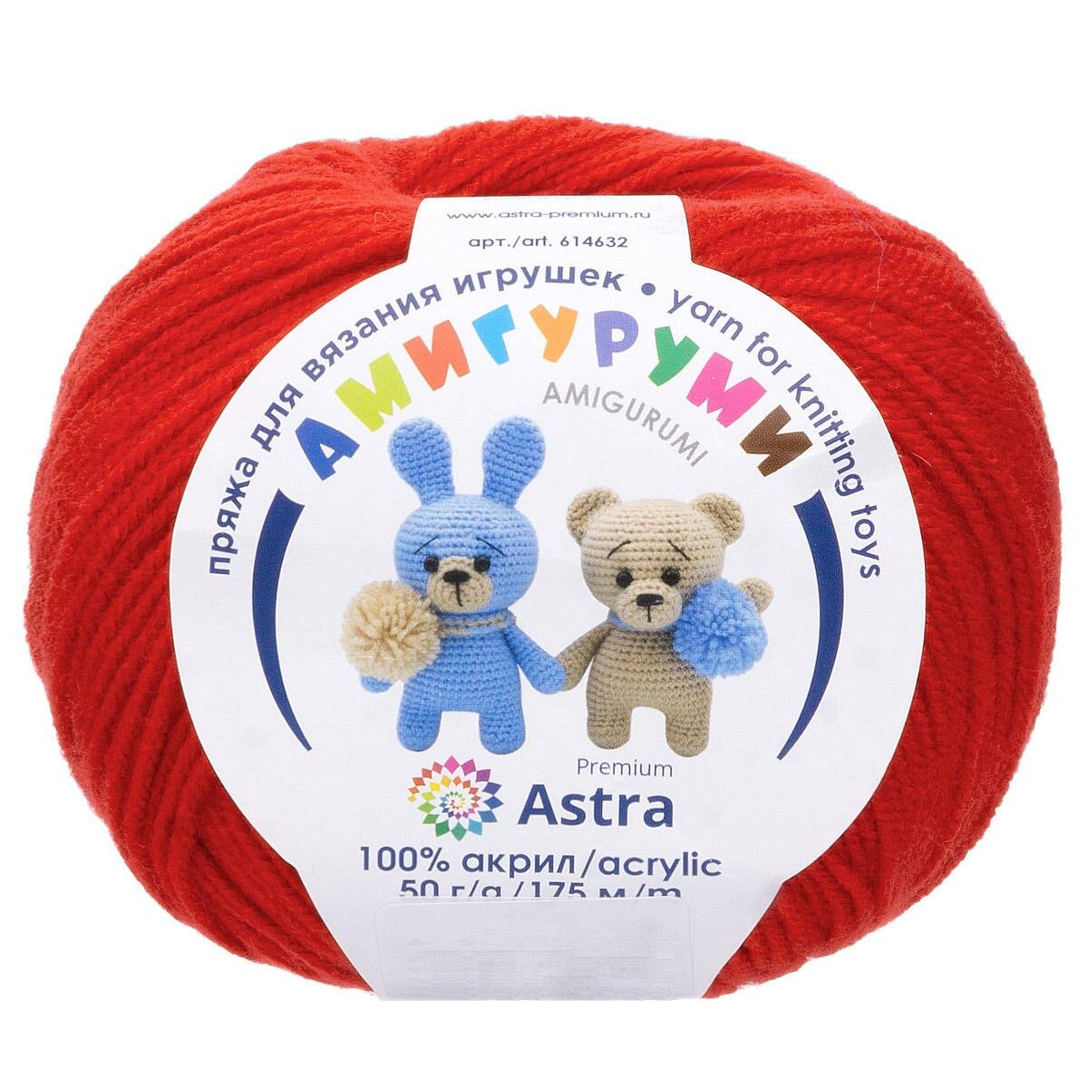 Пряжа для вязания Astra Premium 'Амигуруми' 50г, 175м (100% акрил) (046 красный), 6 мотков
