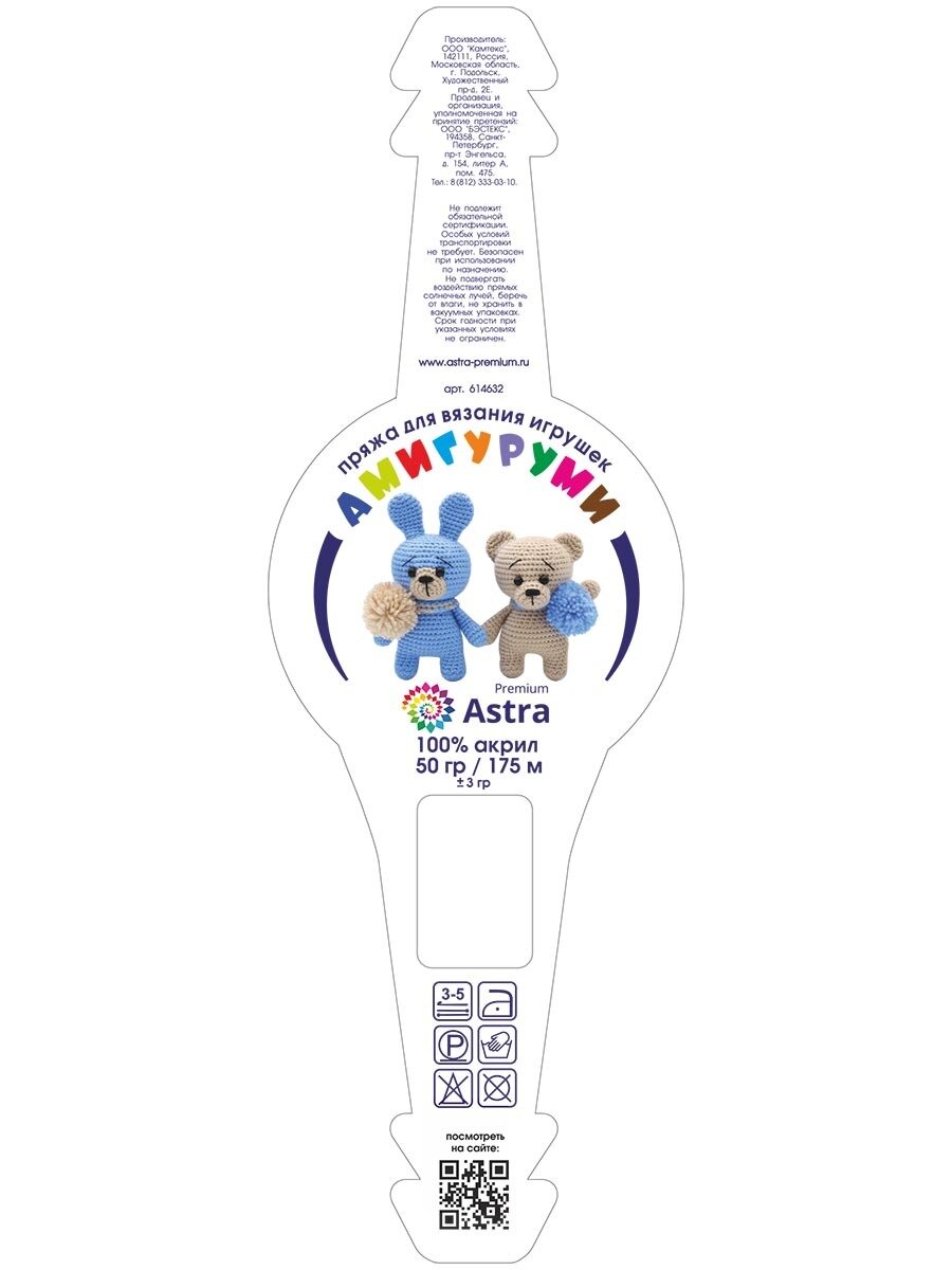 Пряжа Astra Premium "Амигуруми", 50 гр 175 м, 100% акрил, 015 голубой, 6 шт