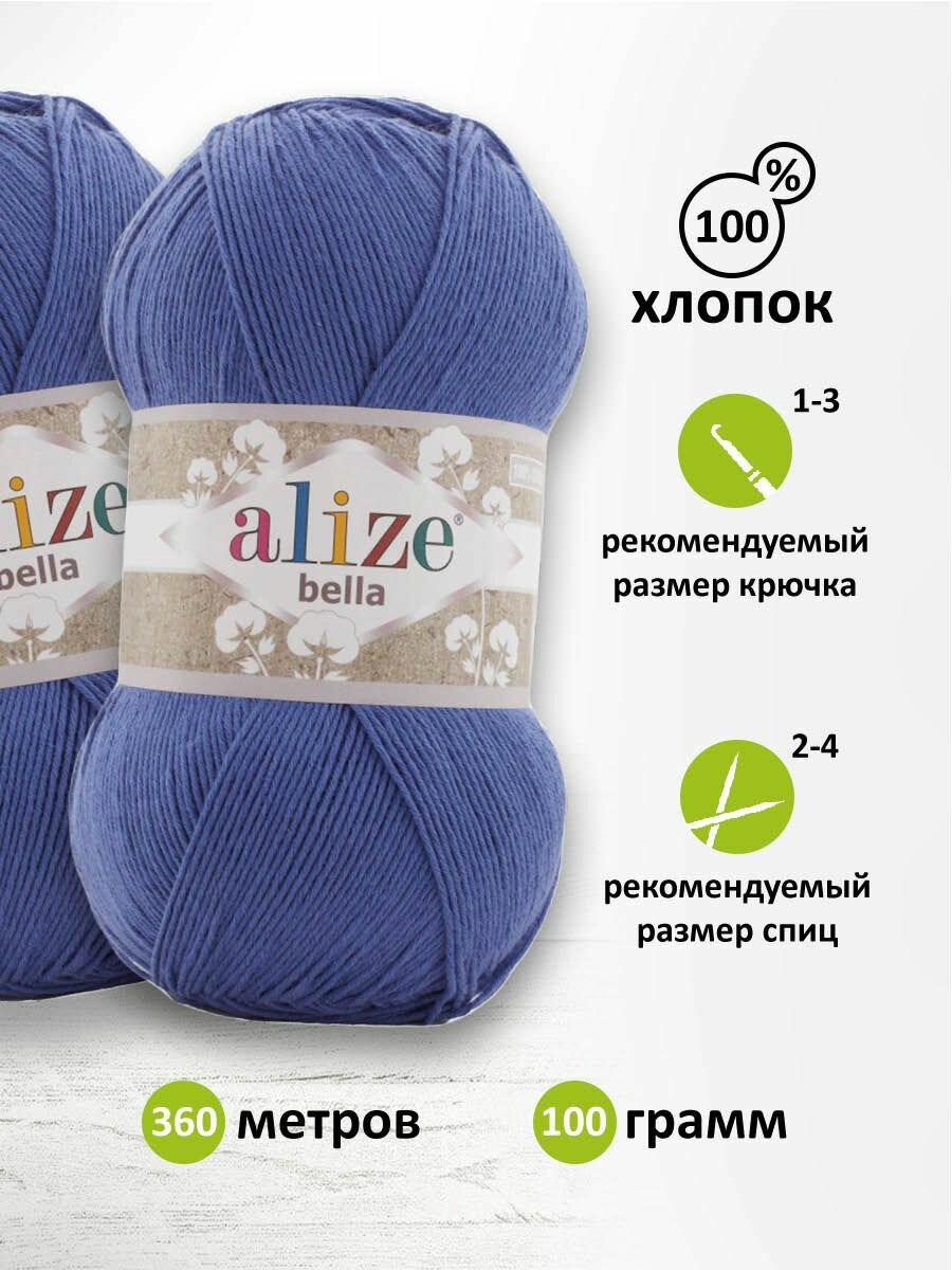 Пряжа Alize Bella 100 синий (333), 100%хлопок, 360м, 100г, 1шт