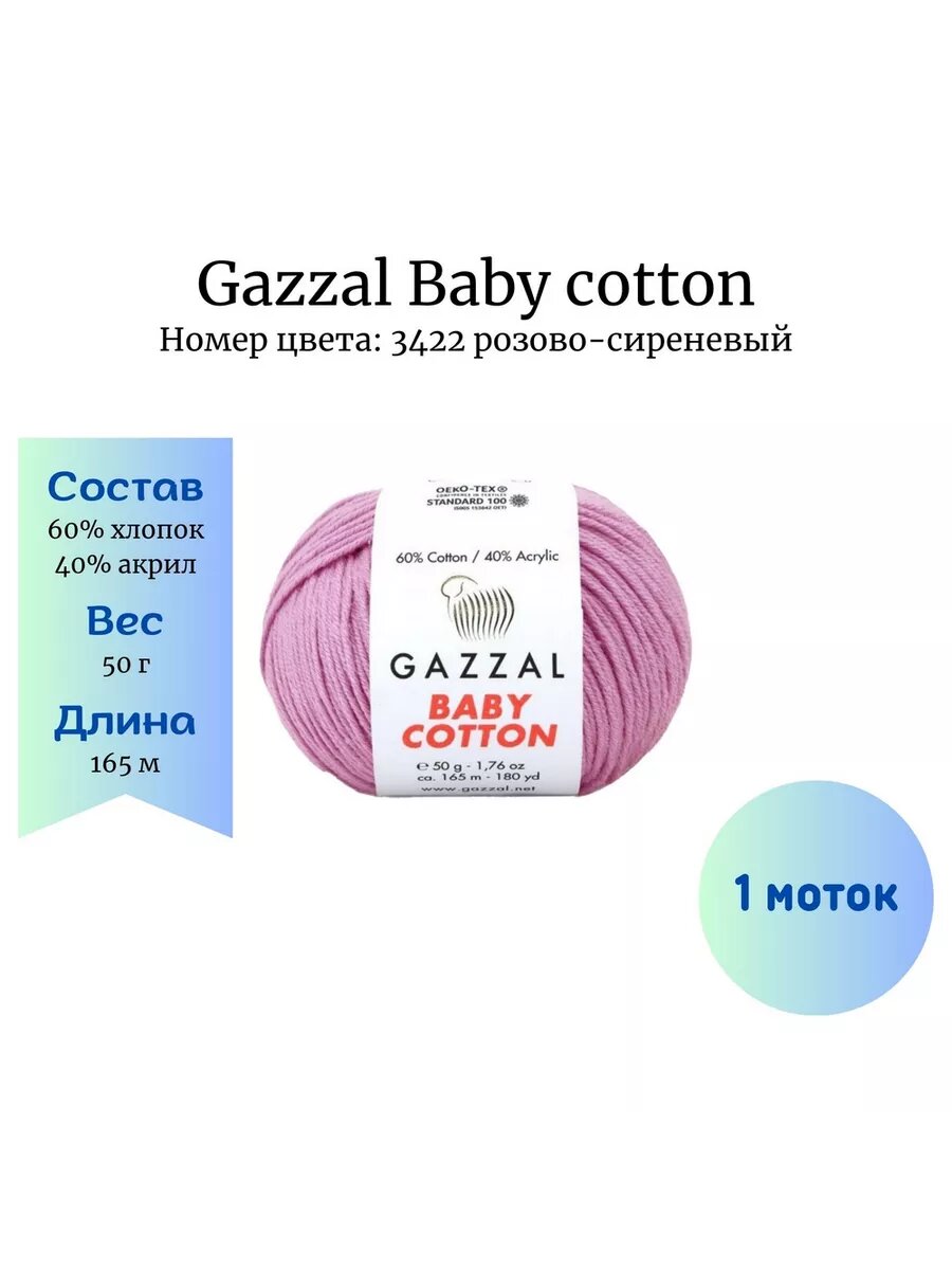 Пряжа Alize Bella 100 сиреневый (158), 100%хлопок, 360м, 100г, 1шт