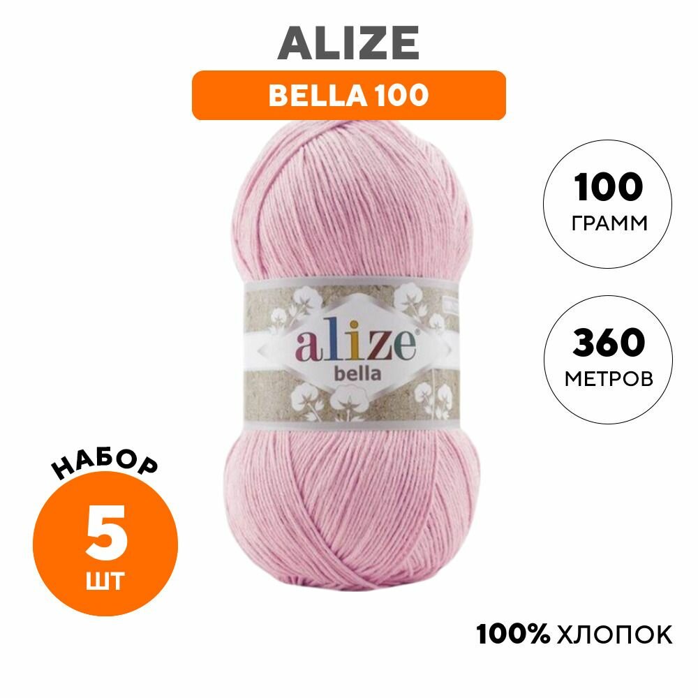 Пряжа Alize Bella 100 розовый (32), 100%хлопок, 360м, 100г, 5шт