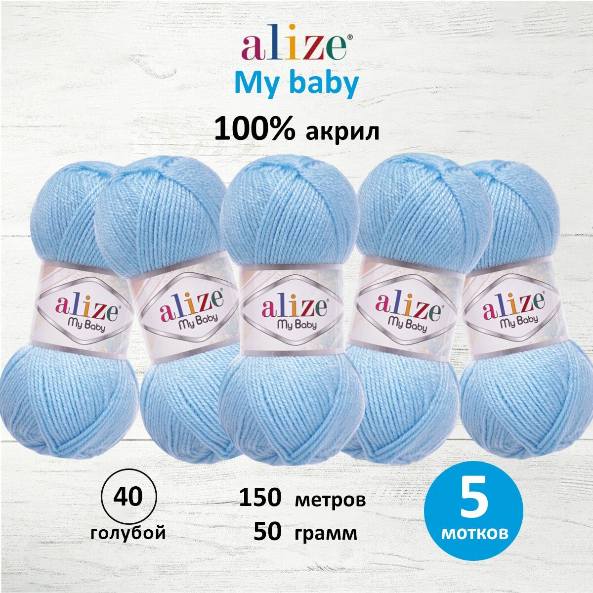 Купить Пряжа для вязания ALIZE 'My baby', 50г, 150м (100% акрил) (40 голубой), 5 мотков