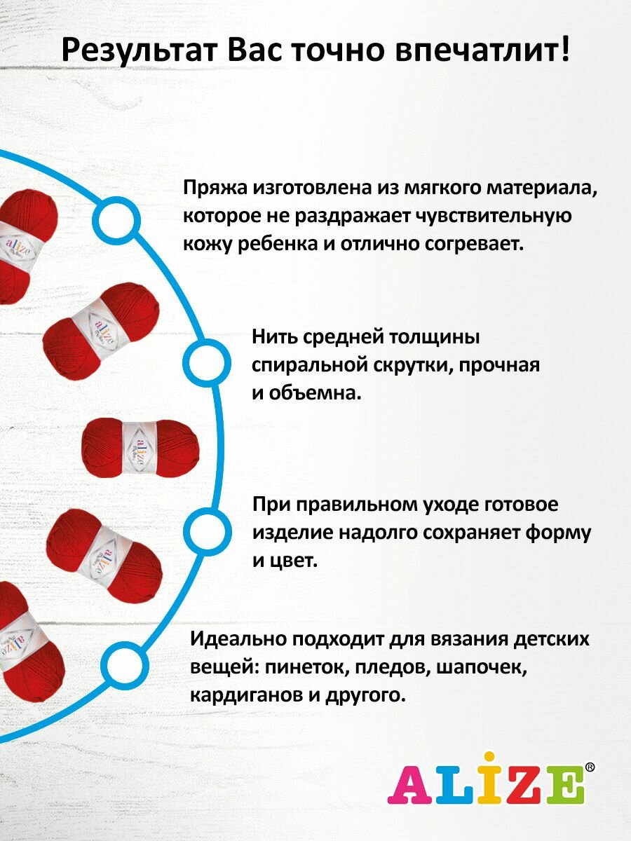 Пряжа для вязания Alize my baby 50 г 150 м акрил мягкая гипоаллергенная 56 красный 5 мотков