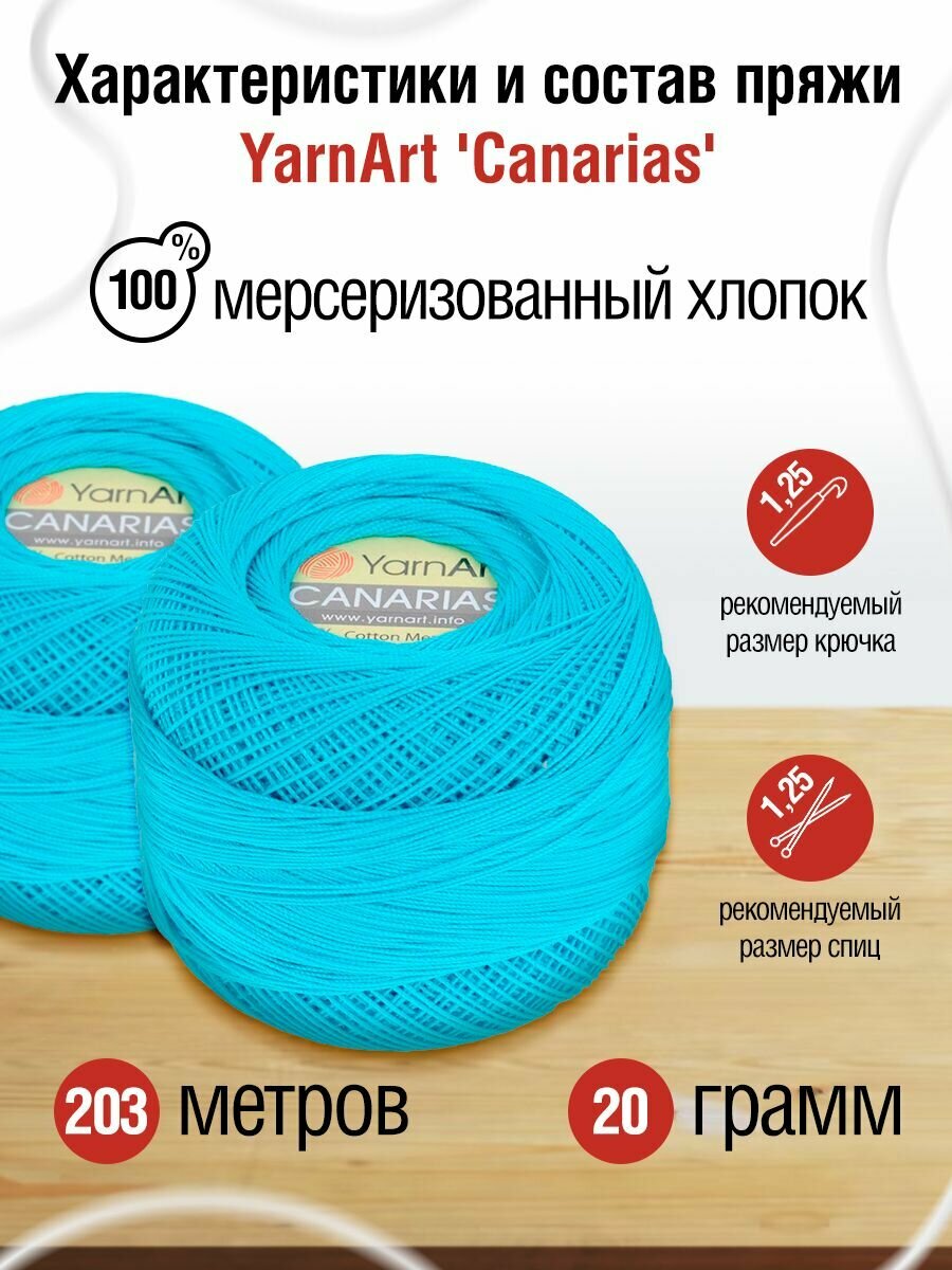 Пряжа для вязания YarnArt 'Canarias' 20г, 203м (100% мерсеризированный хлопок) (8 яркая бирюза), 10 мотков