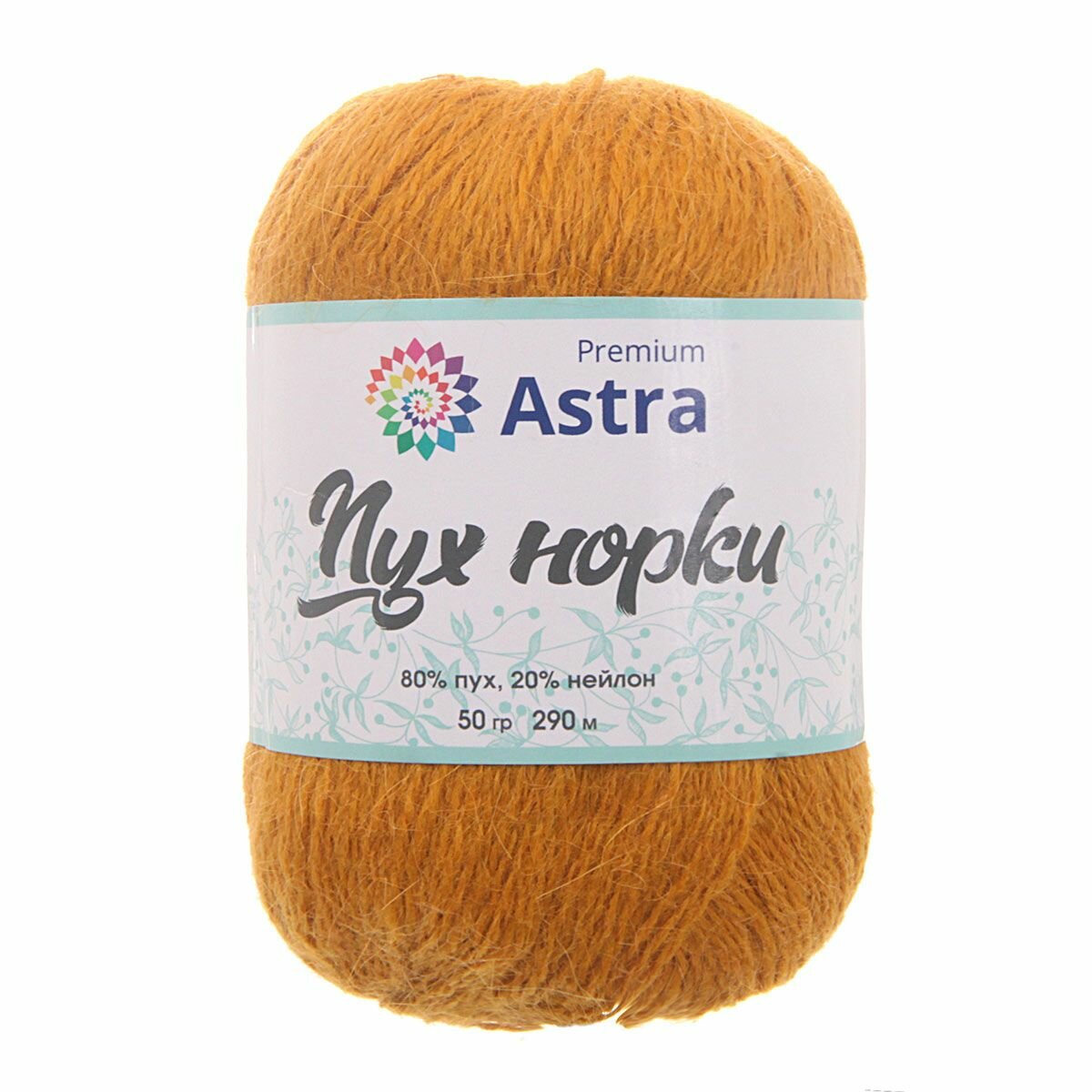 Пряжа Astra Premium "Пух норки", 50 гр 290 м, 80% пух, 20% нейлон, нить 20 гр, 036 горчичный