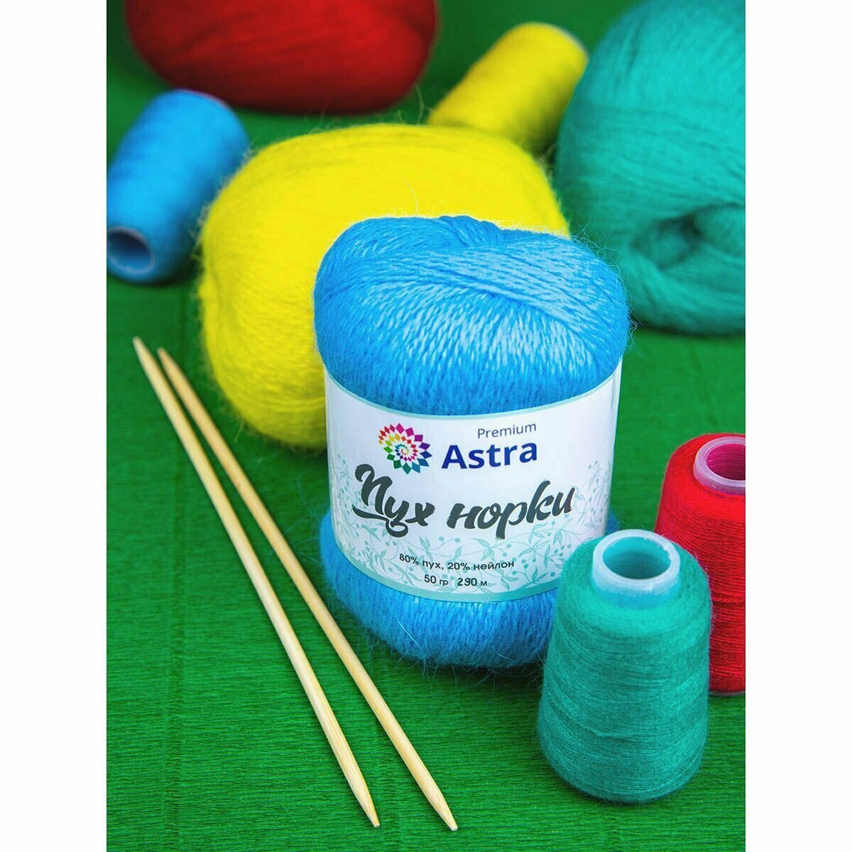 Пряжа Astra Premium "Пух норки", 50 гр 290 м, 80% пух, 20% нейлон, нить 20 гр, 075 зеленая бирюза
