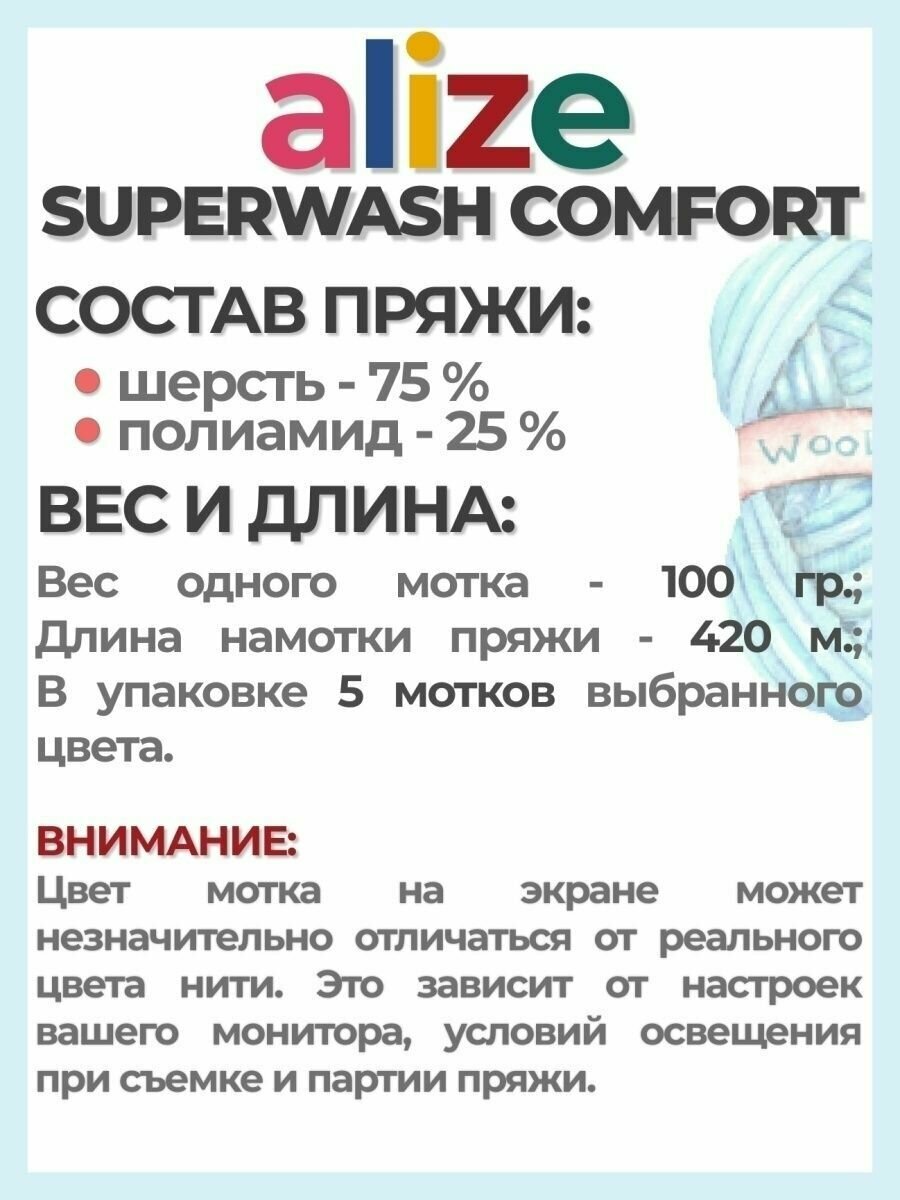 Пряжа Superwash Comfort Socks Alize (7840), 100г, 420м, 75% шерсть, 25% полиамид (1 шт.)