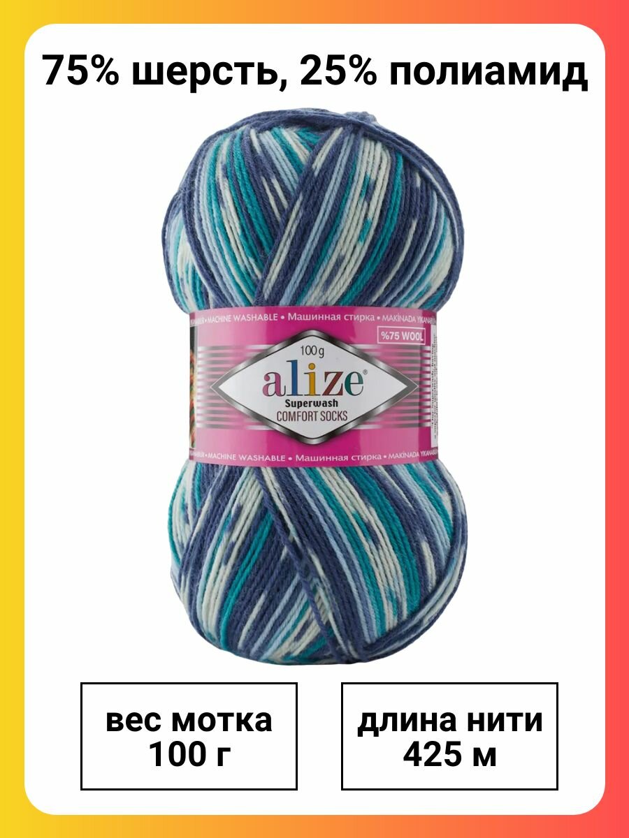 Пряжа Superwash Comfort Socks Alize (7840), 100г, 420м, 75% шерсть, 25% полиамид (1 шт.)