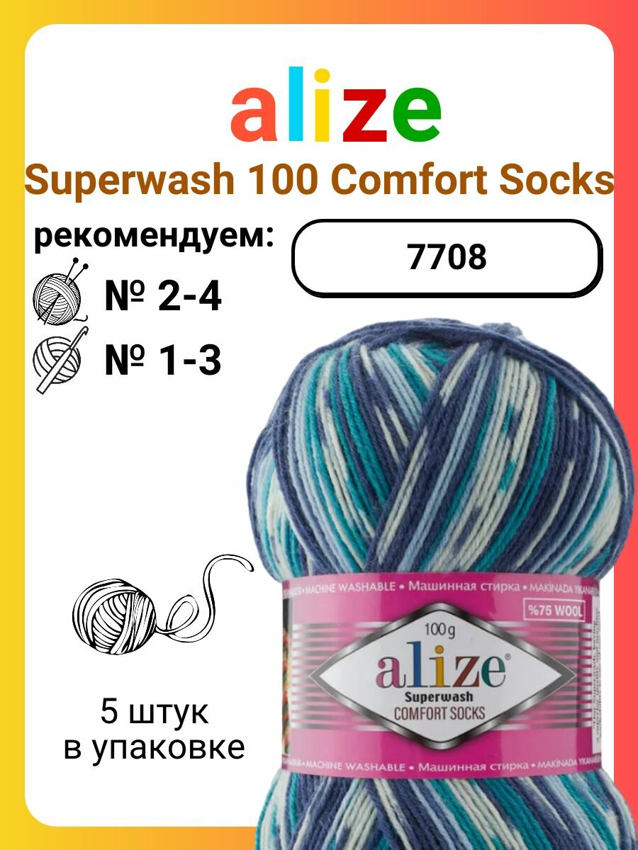 Пряжа для вязания Alize Superwash Comfort Socks, цвет 7709, 100г, 420м, 5шт/упак