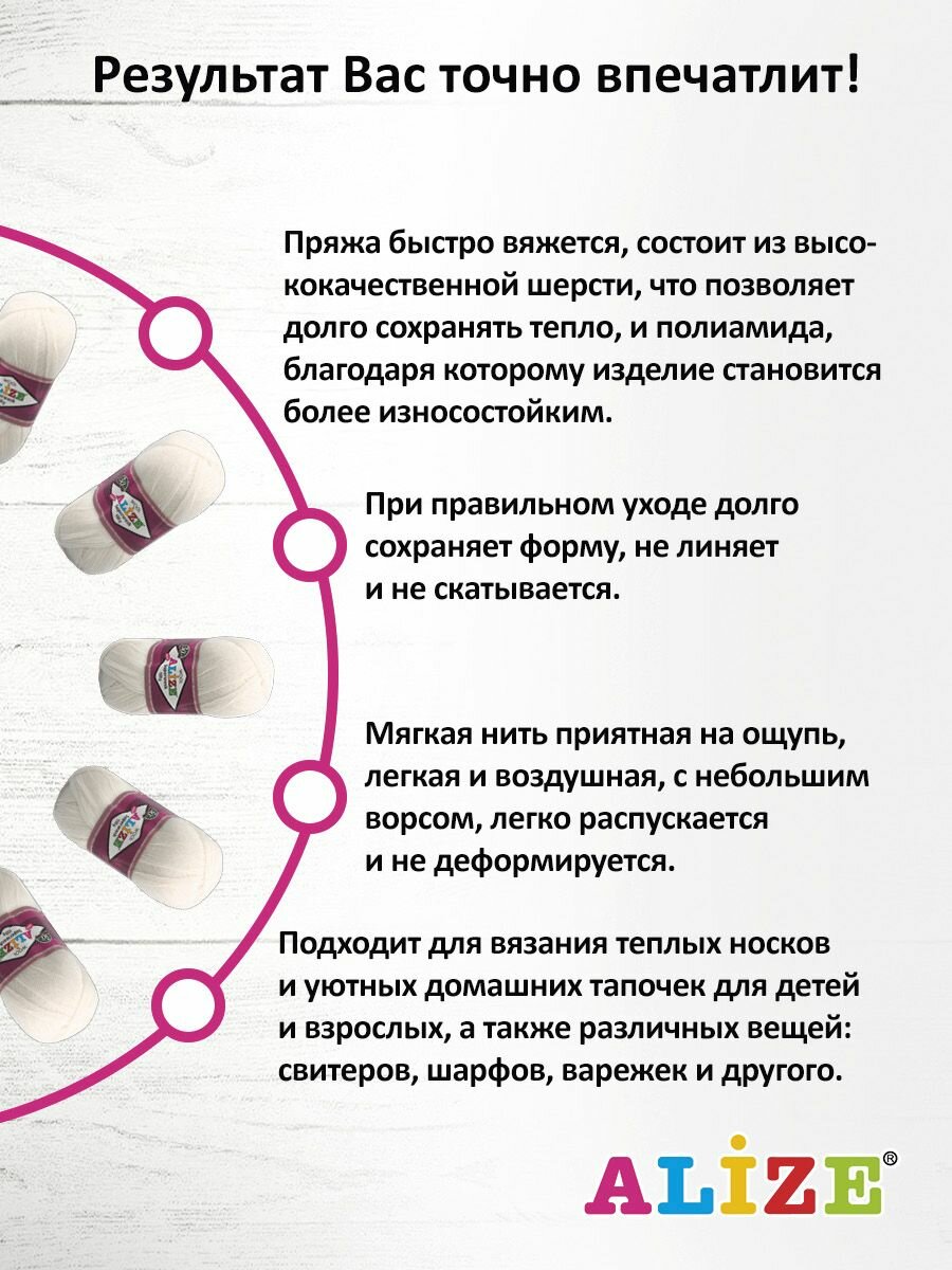 Ниже Вы можете прочитать отзывы на Пряжа Alize Superwash 100 белый (55), 75%шерсть/25%полиамид, 420м, 100г, 5шт, ознакомится с подробными характеристиками, посмотреть интересные обзоры и фотографии на Пряжа Alize Superwash 100 белый (55), 75%шерсть/25%полиамид, 420м, 100г, 5шт.