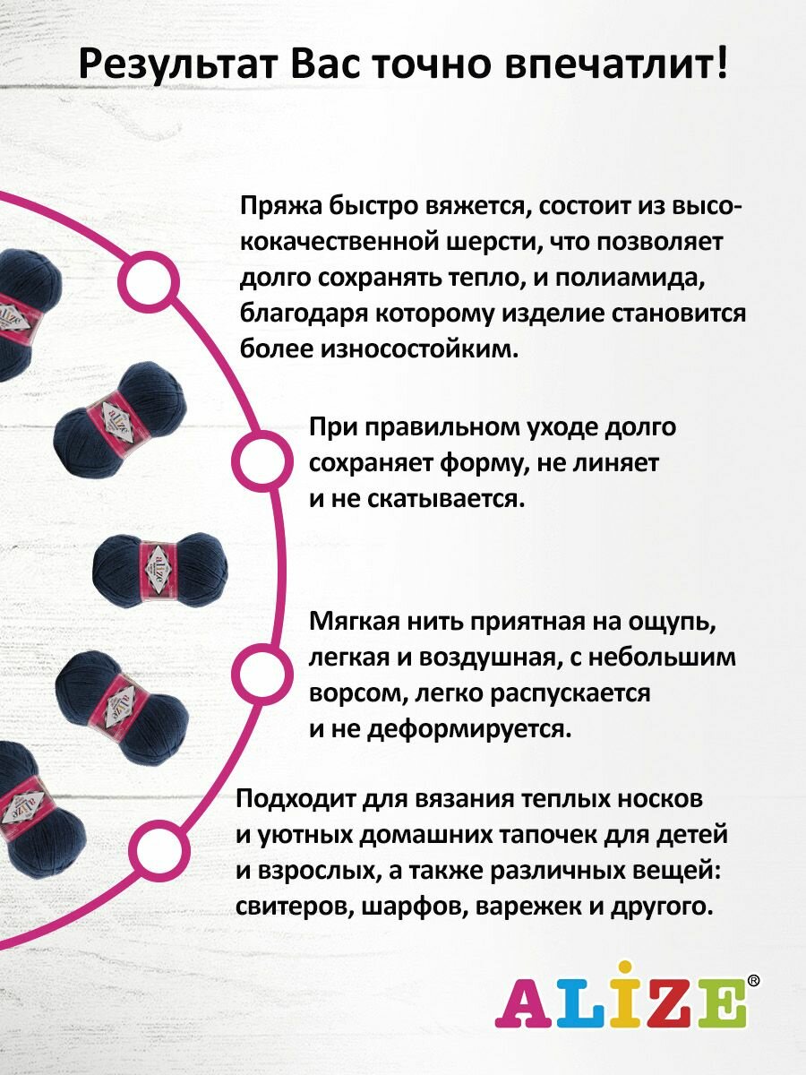 Ниже Вы можете прочитать отзывы на Пряжа Alize Superwash comfort socks темно-синий (846), 75%шерсть/25%полиамид, 420м, 100г, 5шт, ознакомится с подробными характеристиками, посмотреть интересные обзоры и фотографии на Пряжа Alize Superwash comfort socks темно-синий (846), 75%шерсть/25%полиамид, 420м, 100г, 5шт.