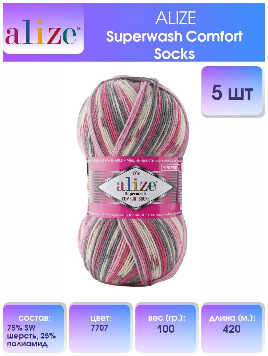 Пряжа ALIZE Superwash Comfort Socks (5шт-100гр-420м.) 7707