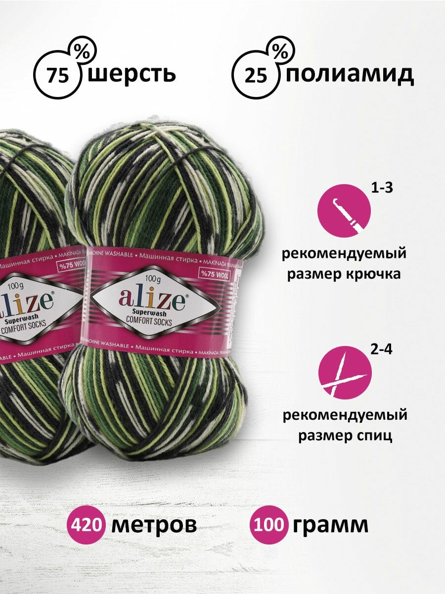Пряжа для вязания Alize Superwash Comfort Socks, цвет 7709, 100г, 420м, 5шт/упак