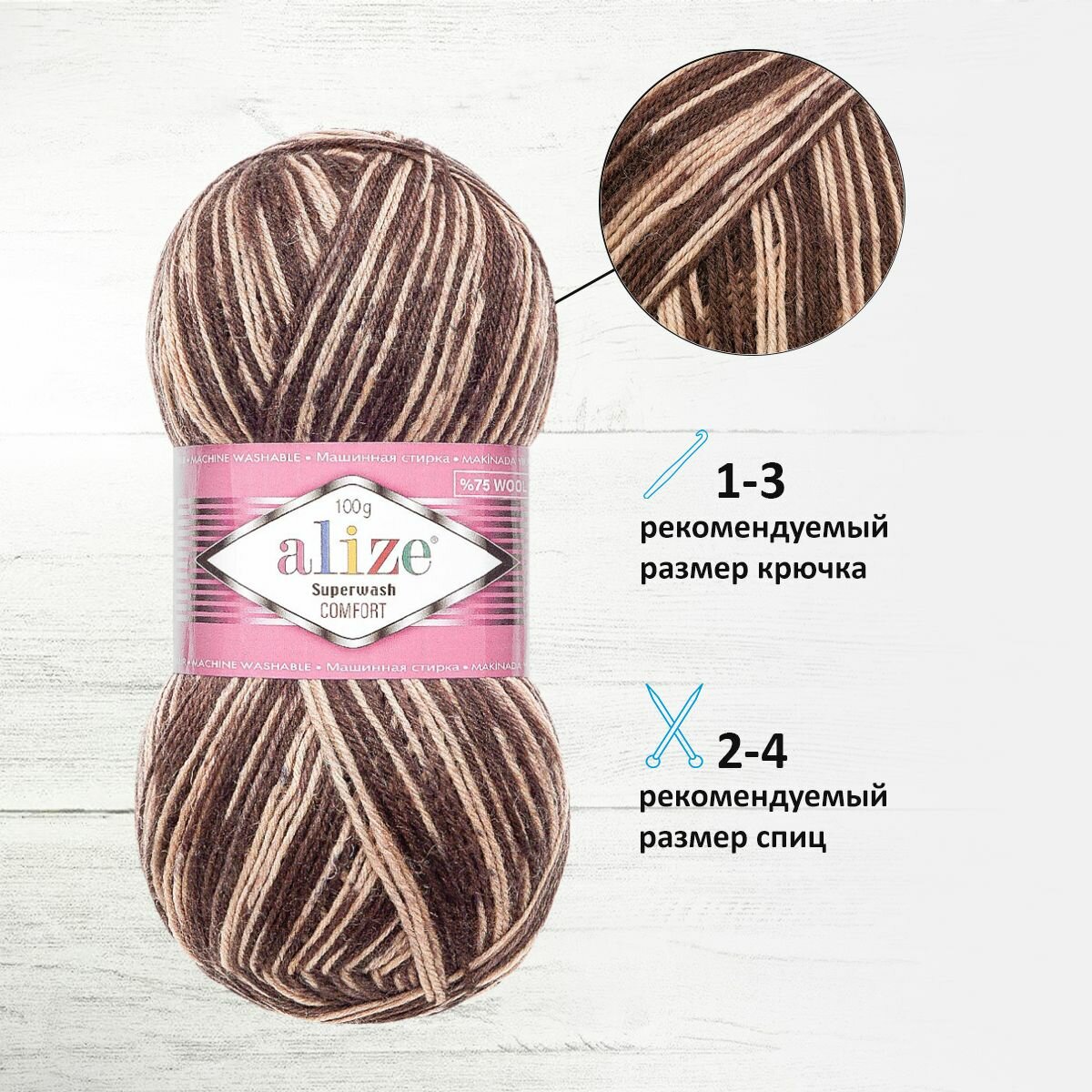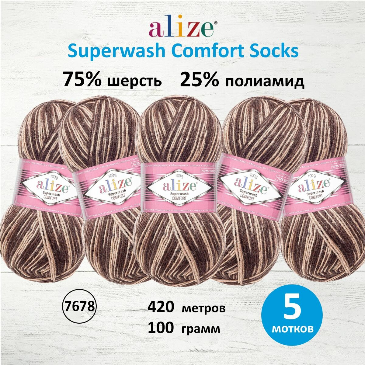 Купить Пряжа Alize Superwash comfort socks коричнево-бежевый (7678), 75%шерсть/25%полиамид, 420м, 100г, 5шт