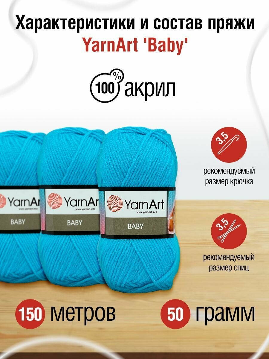 Пряжа Yarnart Baby бирюза (552), 100%акрил, 150м, 50г, 1шт