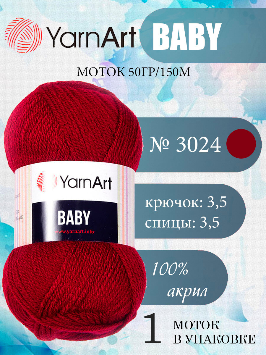 Купить Пряжа Yarnart Baby винный (3024), 100%акрил, 150м, 50г, 1шт